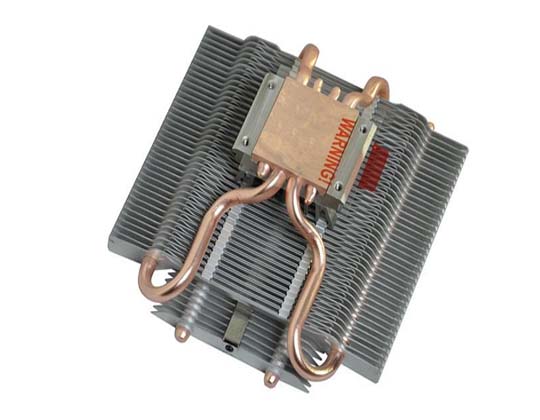 這種散熱片跟鋁制散熱片較大的區別就是材質換成了純銅,因為銅跟鋁相比有個先天的優點:熱傳導效能為412w/mk,比鋁的226w/mk提高了將近1倍,但銅也有個先天的缺點:熱容太高了,也就是說這種散熱片吸熱快但放熱慢,熱量在銅片中的物理沉淀非常多,需要配合大功率高轉速的風扇,才能達到理想的效果。由于銅具有良好的韌性,制造工藝上比鋁容易多了,有折頁式、插齒式等,散熱片的密度可以比鋁制的做得更高,散熱面積也相應更大,這些都可以彌補其熱容高所導致散熱慢的不足,但純銅的單位成本和制造成本比鋁高很多,直接導致這種散熱片的價格居高不下,雖然價格高,但散熱效果比鋁制的要好多了。